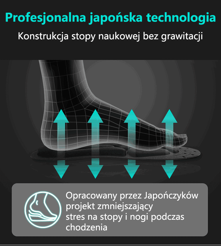 - Zmniejsza ból: łagodzi ból spowodowany płaskostopiem, złą postawą chodzenia i zapaleniem powięzi podeszwowej.